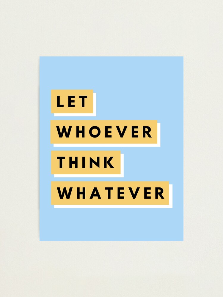 Feb 08, 2021 · let whoever think whatever, just keep doing you," she wrote. Aug 23, 2020 · let whoever think whatever. More images for let whoever think whatever » Machine wash cold with like colors. Those who love you don't need a reason to love you and those who don't will never believe you anyway, catch yourself before you start to ro ejo unnecessarily, save your peace. Arnaldo silva may 7, 2021. The older i get the more i realise that it is important to know what you want from life and to live life the way you want to and not let yourself be dictated by what others tell you. All pieces are custom & made to order, please allow 2 weeks for processing & shipping. I have always been a big people pleaser and often my main motivation to do well was because i feared failure and disappointing others.i wanted to get the best grades so other would not think i was lazy and stupid.since taking a gap year and going to university i have had a slight. Learn to say "no" try to read people; Never tolerate any kind of criticism; Whether someone close to you has subconsciously lied out of insecurity or fear, or someone spiteful has deliberately lied in an attempt to spread misinformation or harm you or those around you (think of the crazy blonde in the movie obsessed), a lie is still a lie, and they usually all hurt. 3513px width x 3446px height, 72dpi.