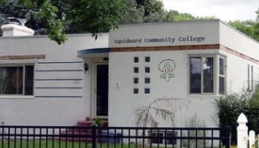 Excellent classes in squid, ward, wardsquid, and squidward!* *: Here at scc our goal is to guarantee your success at gaining a dead end minimum wage fast food job. When the squidward community college was featured in the disney cartoon series the spongebob squarepants movie, it was a great idea for the children to learn the history of the community. Squidward and students are reacting (acceptance to squidward community college) enjoy the meme. All alumni later in life have been proven to do amazing things.
